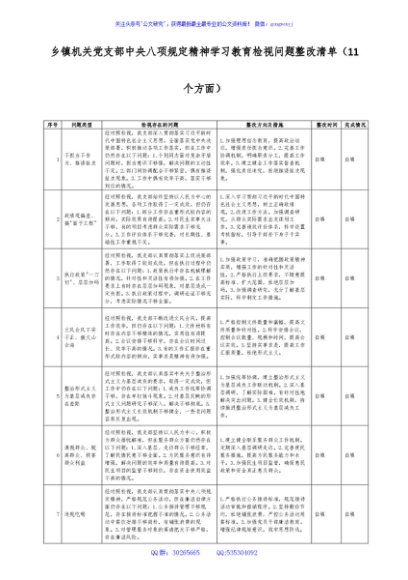 / 乡镇机关党支部中央八项规定精神学习教育检视问题整改清单(11个方面)
