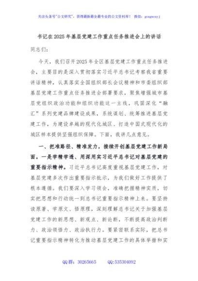 / 书记在2025年基层党建工作重点任务推进会上的讲话