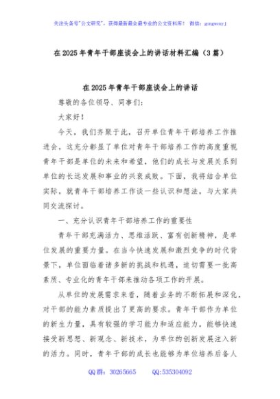 / (3篇)在2025年青年干部座谈会上的讲话材料汇编