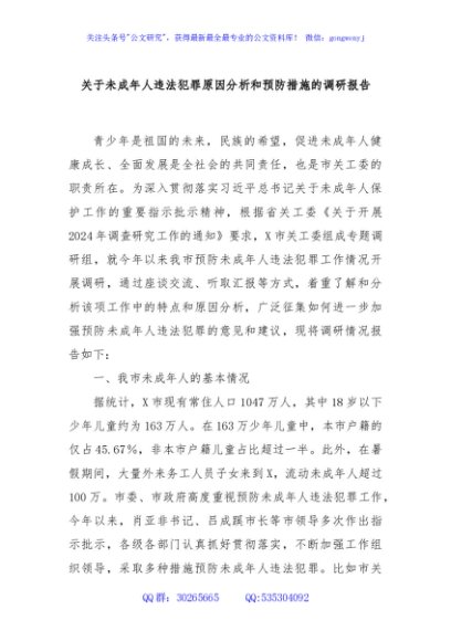 / 关于未成年人违法犯罪原因分析和预防措施的调研报告