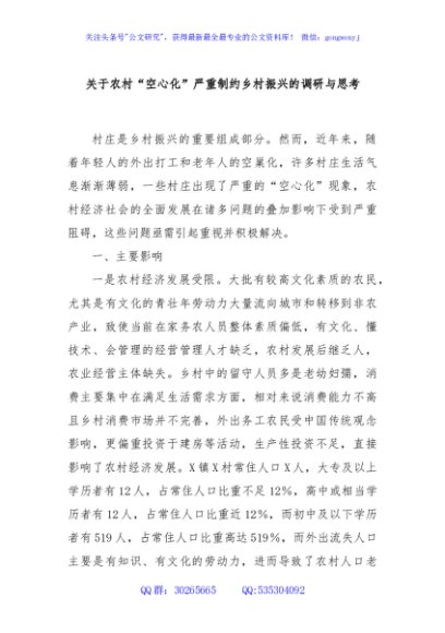 / 关于农村“空心化”严重制约乡村振兴的调研与思考