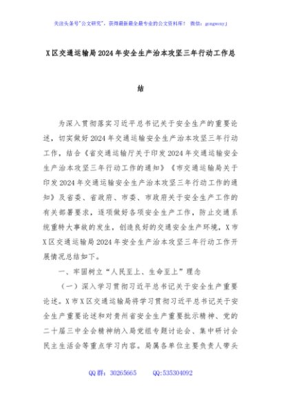/ X区交通运输局2024年安全生产治本攻坚三年行动工作总结