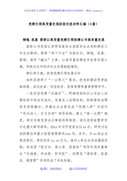 / (3篇)党建引领高质量发展经验交流材料汇编