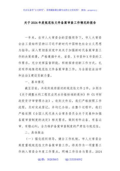 / 关于2024年度规范性文件备案审查工作情况的报告