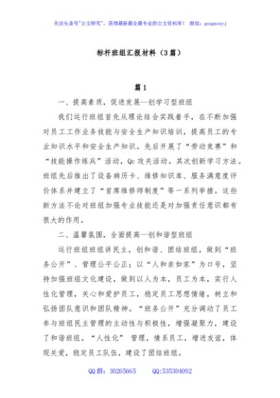 / (3篇)标杆班组汇报材料