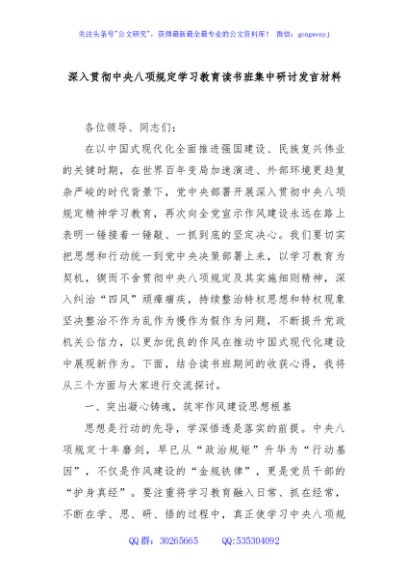 / 深入贯彻中央八项规定学习教育读书班集中研讨发言材料
