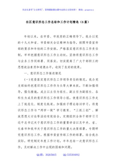 / (6篇)社区意识形态工作总结和工作计划精选