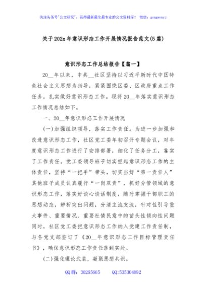 / (5篇)关于202x年意识形态工作开展情况报告范文
