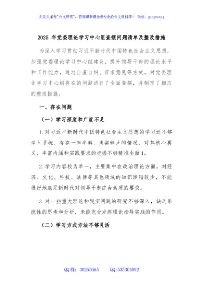 / 2025 年党委理论学习中心组查摆问题清单及整改措施