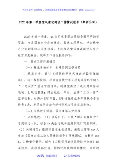 / 2025年第一季度党风廉政建设工作情况报告(集团公司)