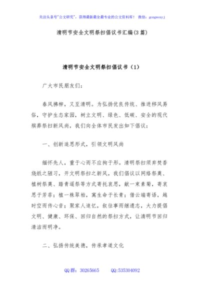 (3篇)清明节安全文明祭扫倡议书汇编