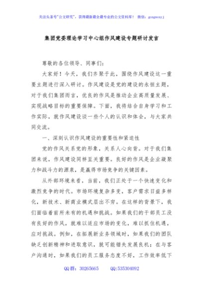 / 集团党委理论学习中心组作风建设专题研讨发言
