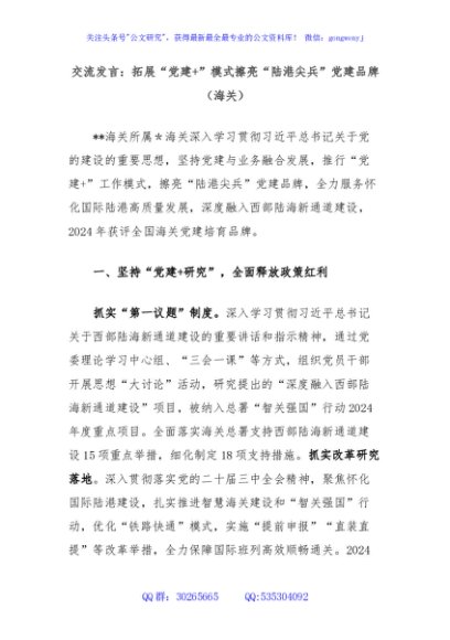 交流发言:拓展“党建+”模式擦亮“陆港尖兵”党建品牌(海关)