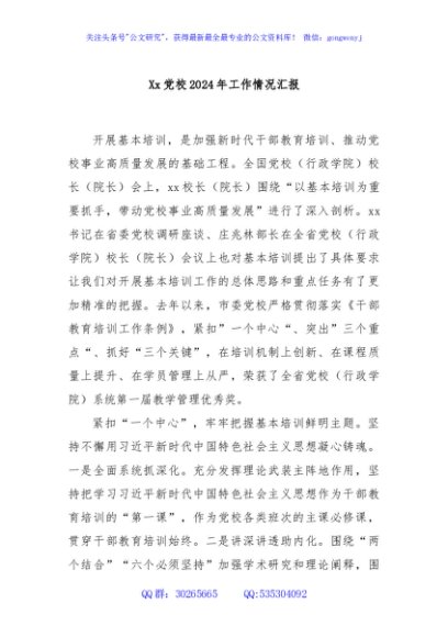 / Xx党校2024年工作情况汇报