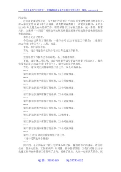 / 国企2022年党建暨宣传思想工作会主持词