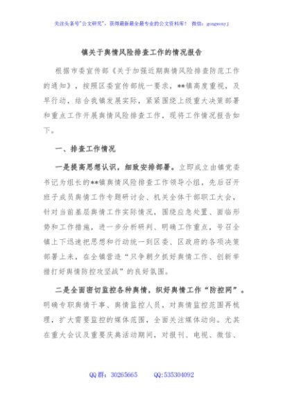 / 镇关于舆情风险排查工作的情况报告