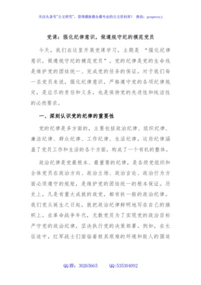 / 党课:强化纪律意识,做遵规守纪的模范党员