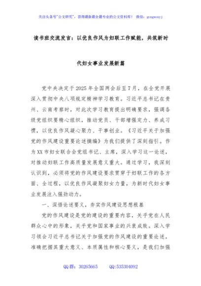 / 读书班交流发言:以优良作风为妇联工作赋能,共筑新时代妇女事业发展新篇