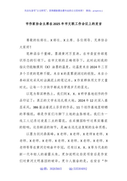 / 市作家协会主席在2025年市文联工作会议上的发言