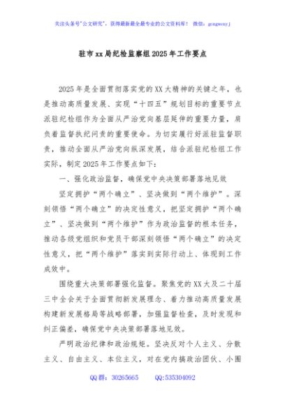 / 驻市xx局纪检监察组2025年工作要点