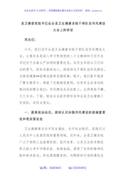 / 县卫健委党组书记在全县卫生健康系统干部队伍作风建设大会上的讲话