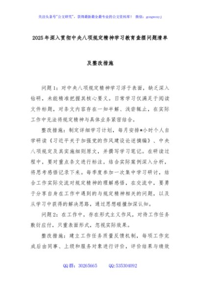/ 2025年深入贯彻中央八项规定精神学习教育查摆问题清单及整改措施