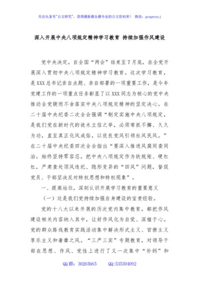/ 深入开展中央八项规定精神学习教育 持续加强作风建设