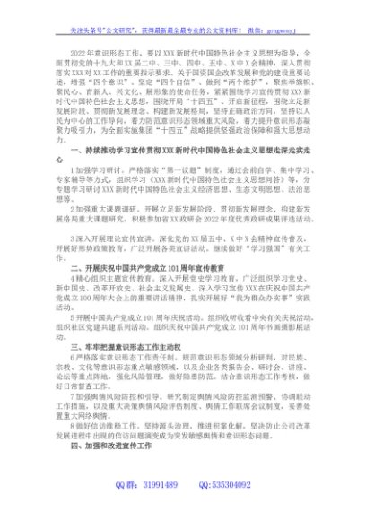 / 国企公司2022年意识形态工作要点