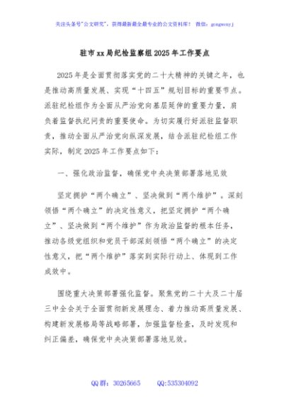 / 驻市xx局纪检监察组2025年工作要点