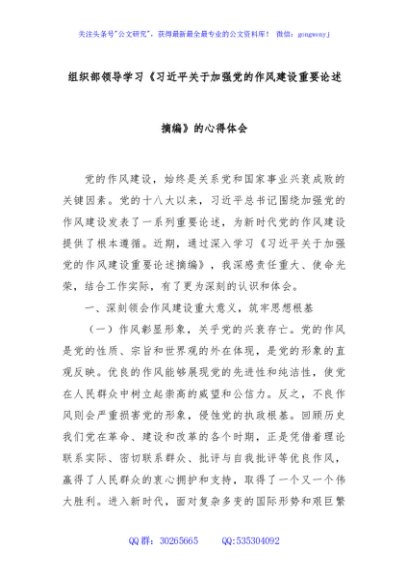 / 组织部领导学习《习近平关于加强党的作风建设重要论述摘编》的心得体会