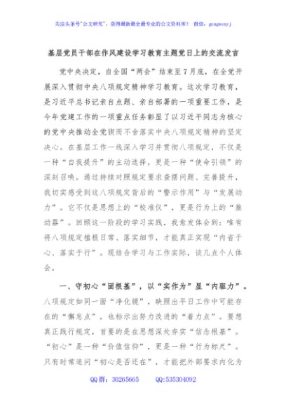 / 基层党员干部在作风建设学习教育主题党日上的交流发言