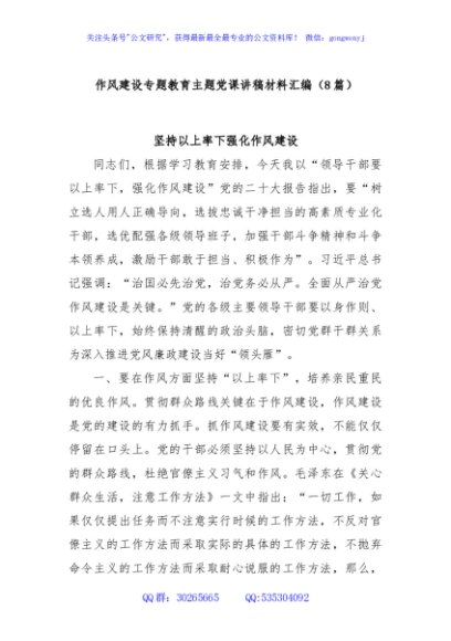 / (8篇)作风建设专题教育主题党课讲稿材料汇编