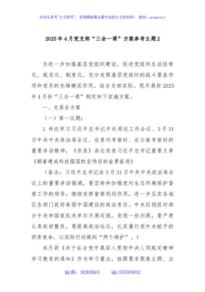 / 2025年4月党支部“三会一课”方案参考主题2