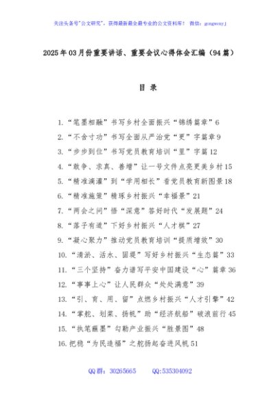 / (94篇)2025年03月份重要讲话、重要会议心得体会汇编
