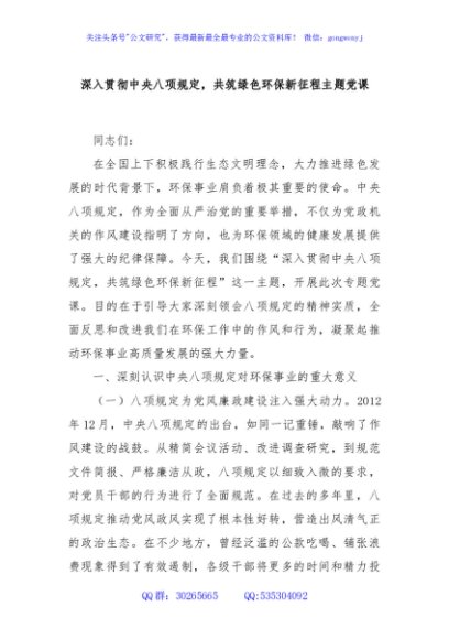 / 深入贯彻中央八项规定,共筑绿色环保新征程主题党课