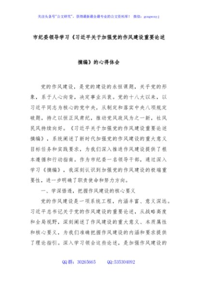 / 市纪委领导学习《习近平关于加强党的作风建设重要论述摘编》的心得体会