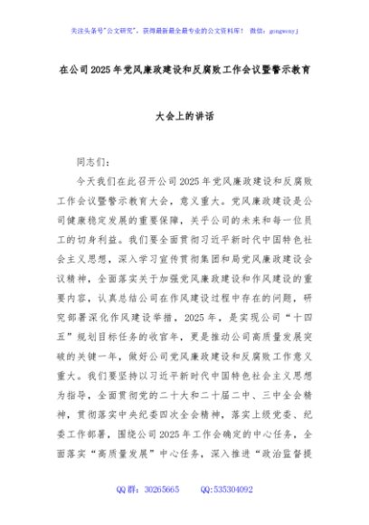 / 在公司2025年党风廉政建设和反腐败工作会议暨警示教育大会上的讲话