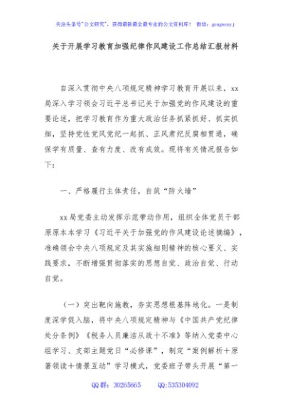 / 关于开展学习教育加强纪律作风建设工作总结汇报材料