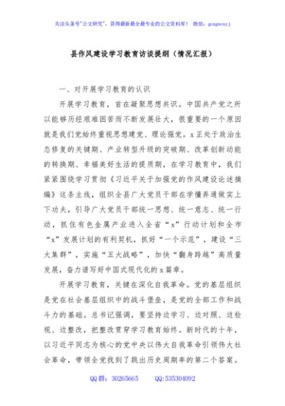 / 县作风建设学习教育访谈提纲(情况汇报)
