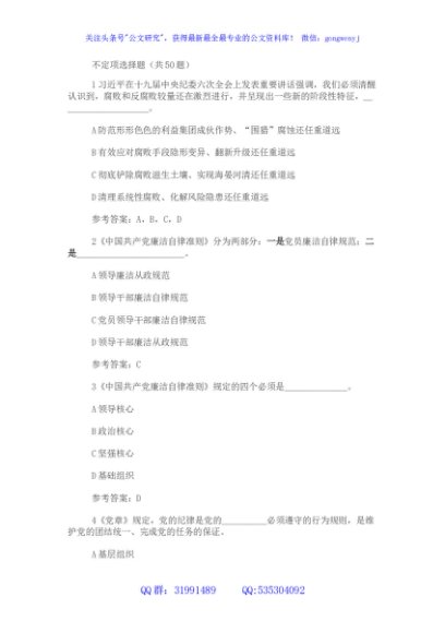 纪律教育学习宣传月党规党纪知识测试题和答案