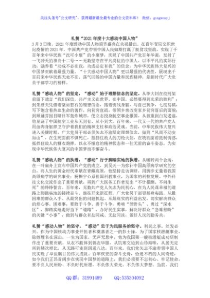 观看2021年度十大感动中国人物”观后感(心得)