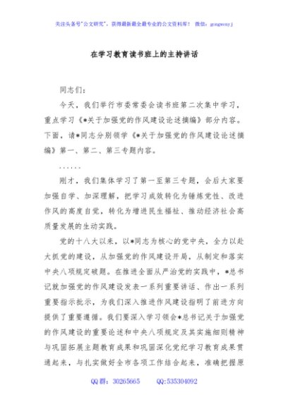 / 在学习教育读书班上的主持讲话