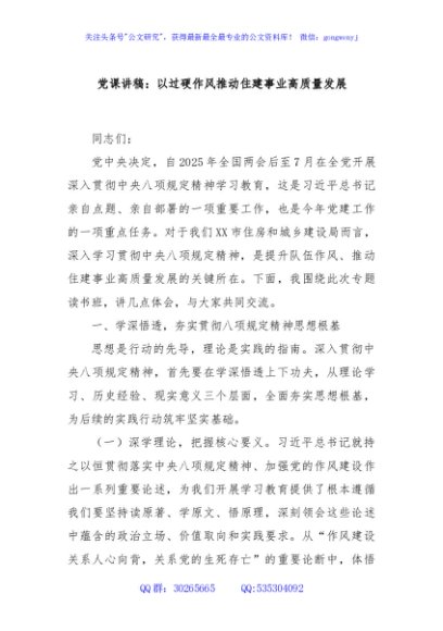 / 党课讲稿:以过硬作风推动住建事业高质量发展