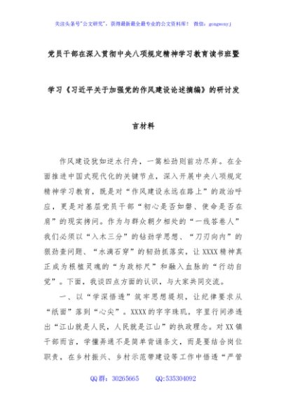 / 党员干部在深入贯彻中央八项规定精神学习教育读书班暨学习《总书记关于加强党的作风建设论述摘编》的研讨发言材料