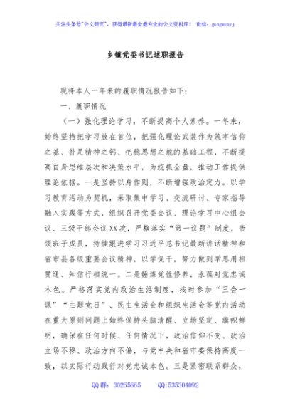 / 乡镇党委书记述职报告