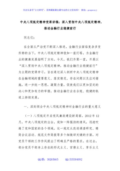 / 中央八项规定精神党课讲稿:深入贯彻中央八项规定精神,推动金融行业稳健前行