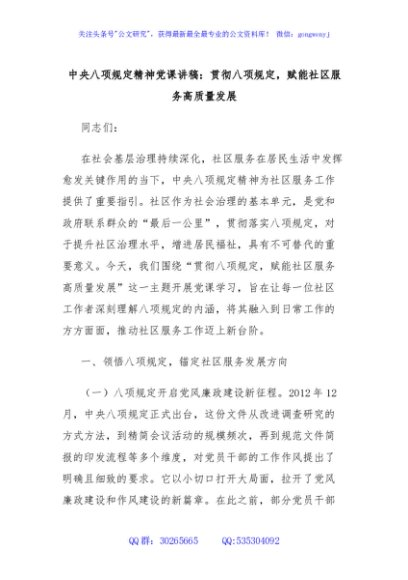 / 中央八项规定精神党课讲稿:贯彻八项规定,赋能社区服务高质量发展