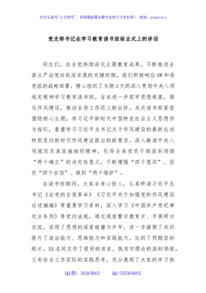 / 党支部书记在学习教育读书班结业式上的讲话