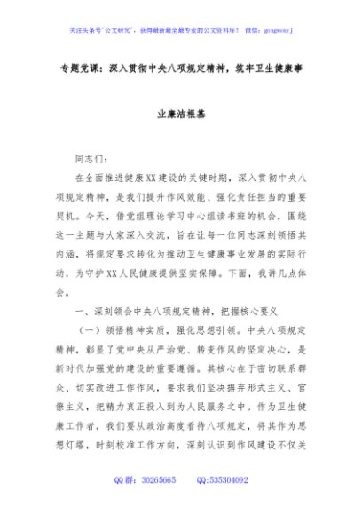 专题党课:深入贯彻中央八项规定精神,筑牢卫生健康事业廉洁根基