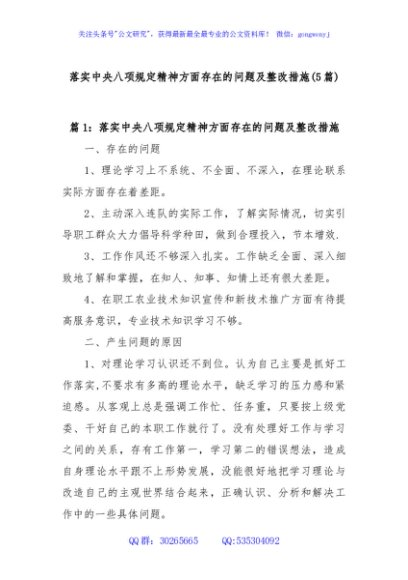 / (5篇)落实中央八项规定精神方面存在的问题及整改措施